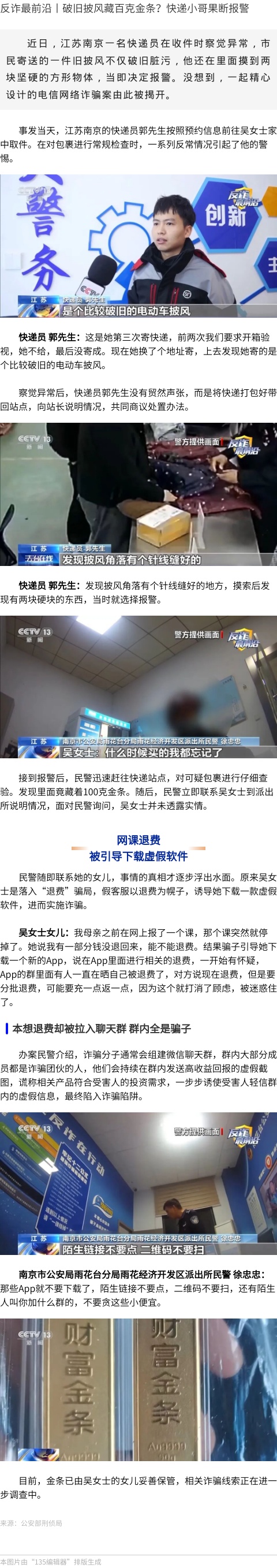 反诈最前沿丨破旧披风藏百克金条?快递小哥果断报警