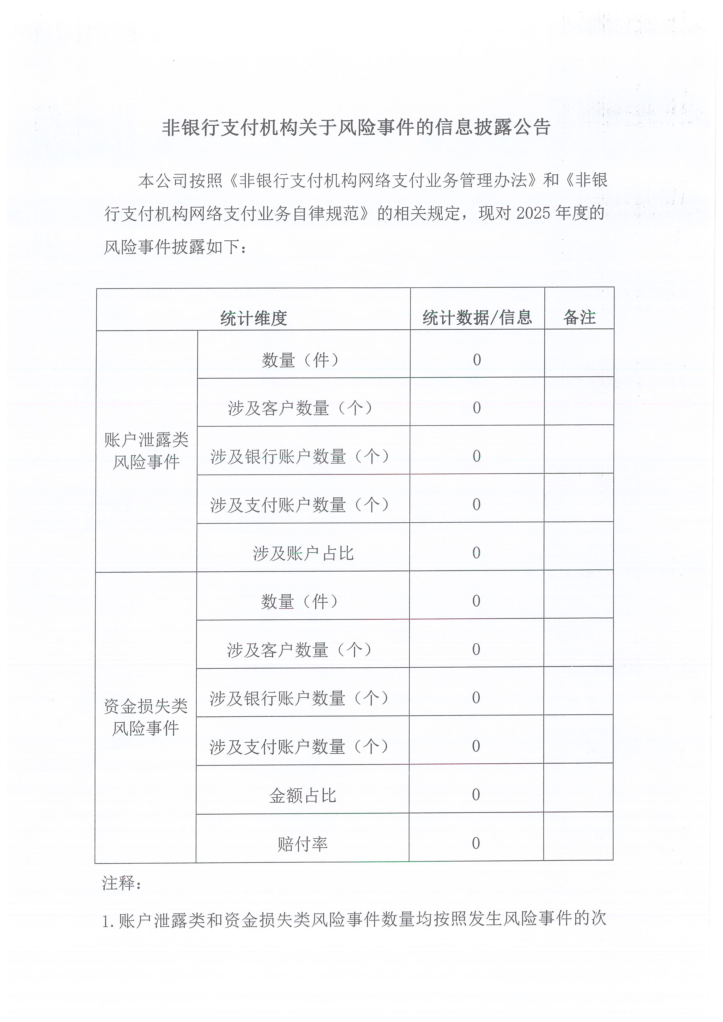 非银行支付机构关于风险事件的信息披露公告